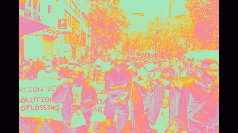 Avec : La Voix des Sans Papiers de Bruxelles (VSP) · Le Comité des femmes sans papiers · VSP Liège · Baraka Grafika · Les Écoles Supérieures d’Arts Saint-Luc & ERG · Des artistes sans et avec papiers.