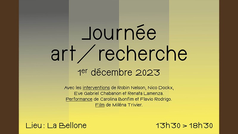a/r invite le public pour une après-midi de rencontres et discussions dédiées à des contextes de recherche en art reposant sur un modèle Practice as research au Royaume-Uni (Robin Nelson) et en Flandres (Nico Dockx) ainsi que sur une inscription sociale et en démarche de co-création (Eve Gabriel Chabanon) ou encore selon une approche transdisciplinaire des arts de la scène (Renata Lamenza).