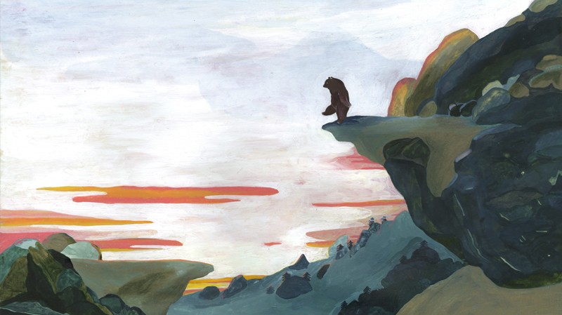 C’est l’histoire d’un ours qui s’appelle Kintsugiet qui tombe un matin de tout en haut d’une très haute montagne.